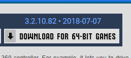 フォートナイトは、64bitプログラムですので、以下の x360ce のサイトの「DOWNLOAD • for 64-bit games」のリンクをクリックし、「x360ce_x64.zip」をダウンロードします。