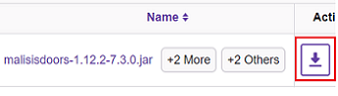 ドアmod (MalisisDoors)の、malisisdoors-1.12.2-7.3.0.jar を取得します。MalisisDoors のダウンロードサイトで「malisisdoors-1.12.2-7.3.0.jar」の 下矢印 ボタンをクリックします。