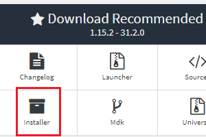 modを管理する forge を取得します。Recipe Randomizer は forge 1.15.2 が対象のため、forge 1.15.2 の推奨バージョン 31.2.0 の forge-1.15.2-31.2.0-installer.jar を取得します。