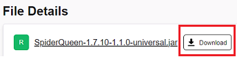 女王グモmod(Spider Queen) の SpiderQueen-1.7.10-1.1.0-universal.jar を取得します。
