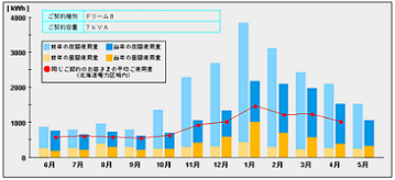 そこで、2015年6月~2016年5月の電気使用量から北海道電力のオール電化向けの ドリーム8 ・ ドリーム8エコ ・ eタイム3 でどれが一番お得か比較しました。