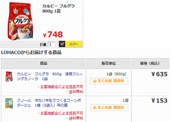 例)カルビーフルグラの748円が まとめ割の15%割引で 635円です。