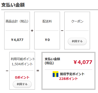 Yahoo! JAPAN IDによるポイント +1% と 5のつく日(+2%) に ポイントサイトを経由(+1.5%)して購入しているので、約4.5%のポイントが付きます。