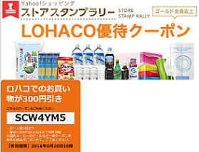商品購入時に使用するロハコ 300円割引クーポンをYahooストアスタンプラリーのサイトで確認します。