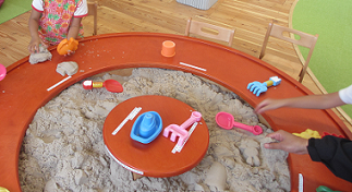 特に子供たちは、砂場がお気に入りで、アンパンマンやケーキなどを作って楽しんでいます。